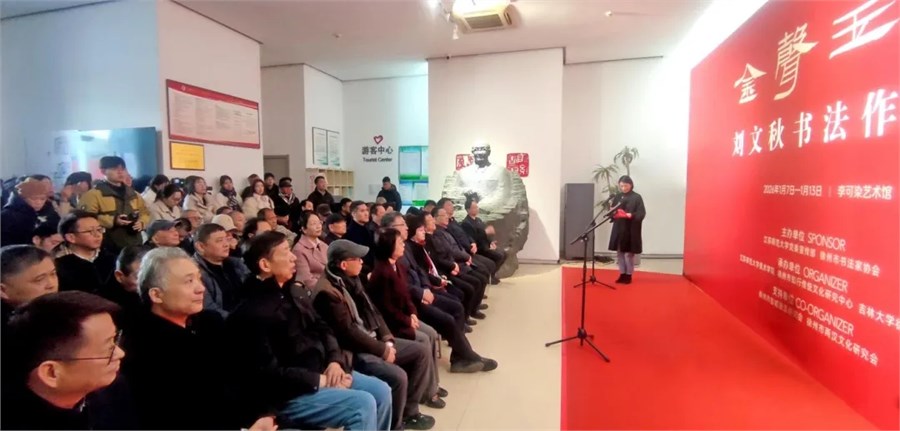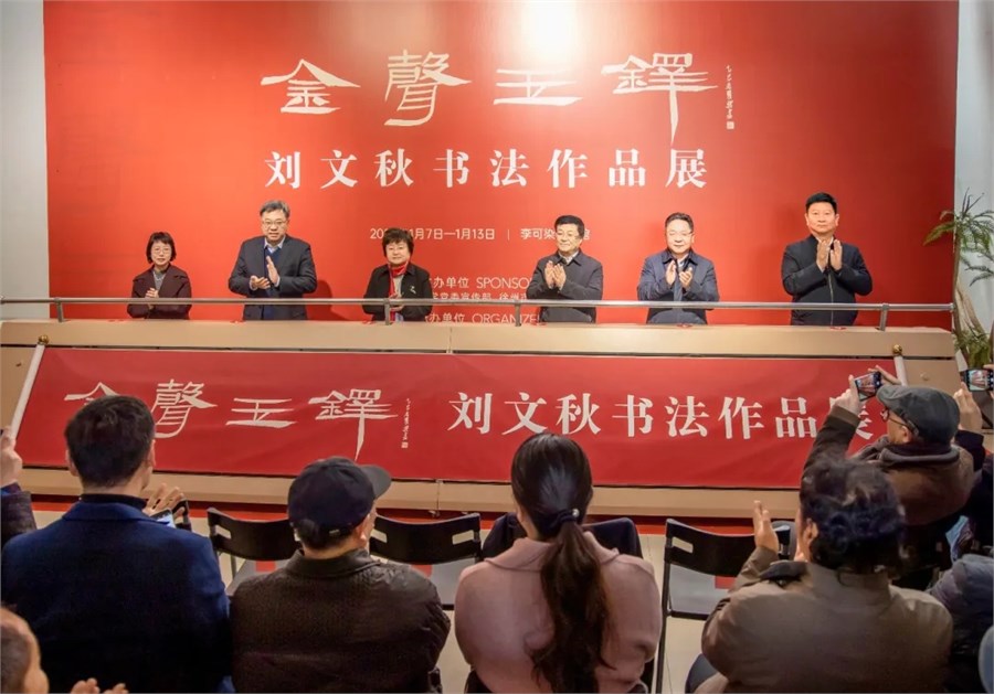 1月10日,由江苏师范大学党委宣传部、徐州市书法家协会主办,江苏师范大学美术学院、徐州市知行传统文化研究中心、吉林大学徐州校友会承办的金声玉铎——刘文秋书法作品展在李可染艺术馆开幕。